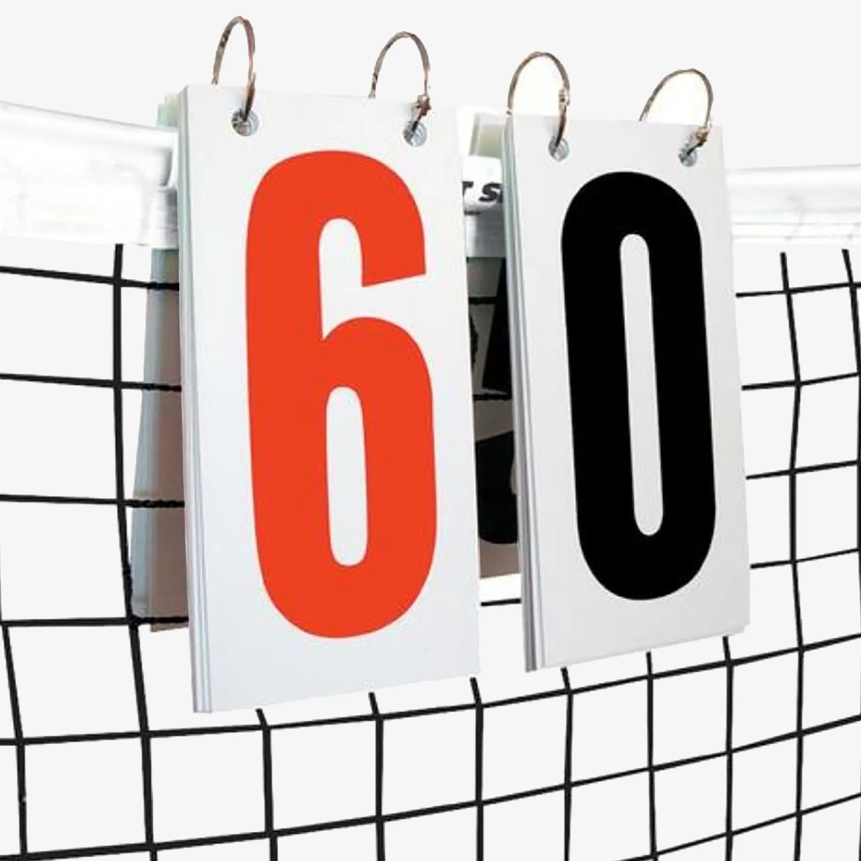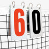 Score Reporter Flip Cards can be used as a stand-alone scoring system or as replacement cards for the Score Reporter or Premium Score Reporter. These 4-inch by 8-inch styrene cards feature black and red numbers printed on both sides, visible up to 250 feet away. They easily attach to the net with large metal rings (included), making them perfect for keeping score on any court.